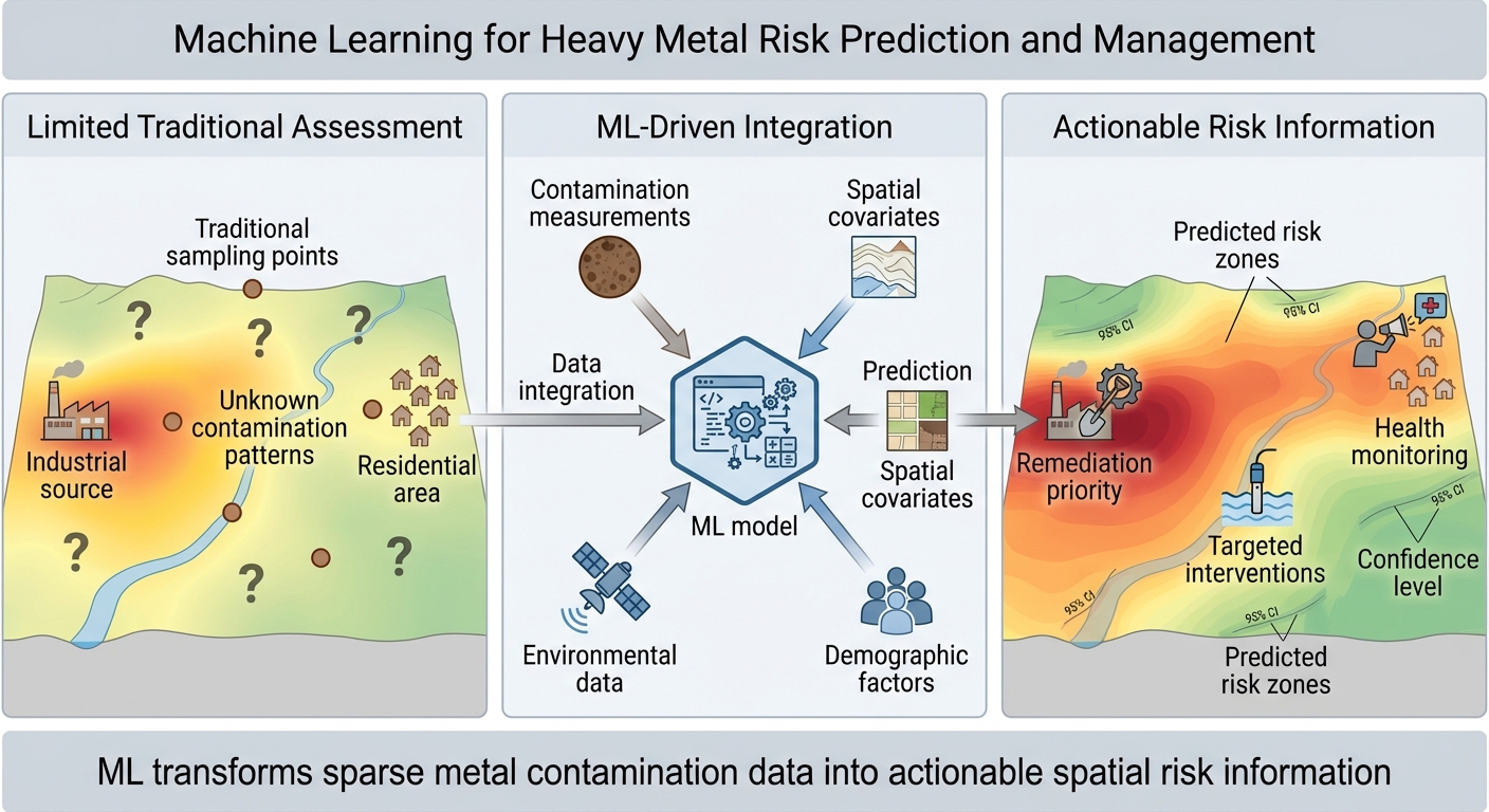 - Predict spatial patterns of heavy metals and exposure risk using ML.