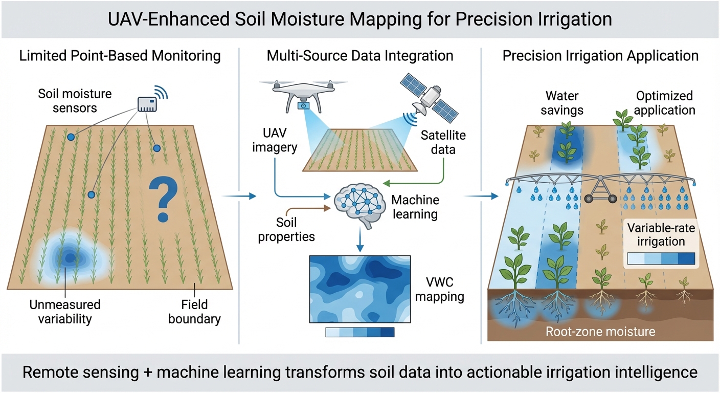 - Integrate in-situ moisture data with UAV/satellite-derived features.